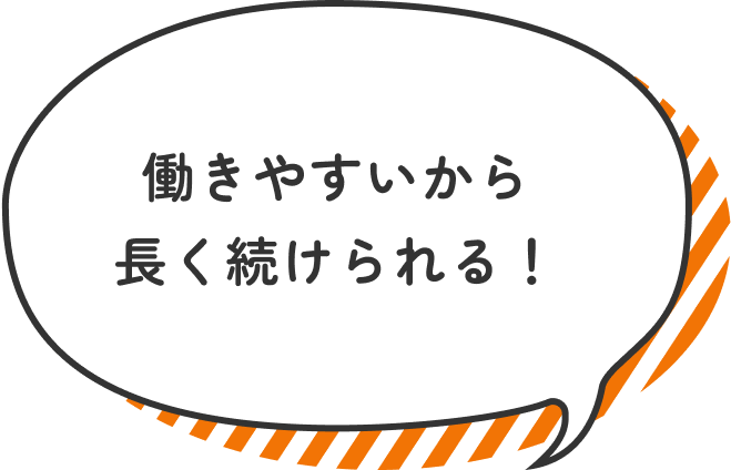 職員が自身の私生活と仕事を両立し、長くやりがいを持って働いてもらえるような職場環境づくりを心がけています。
